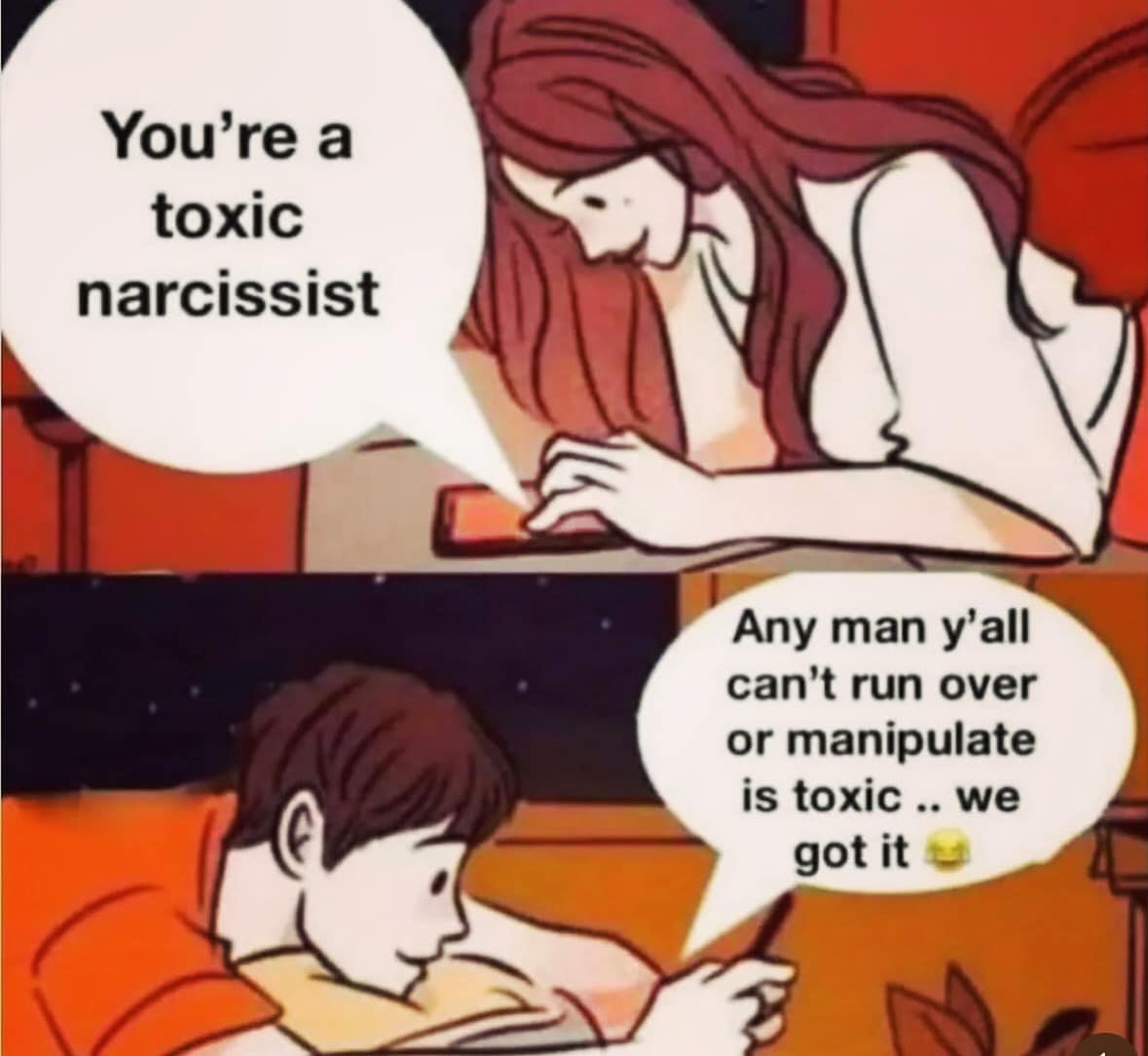 They gaslight you. They instill doubt in your mind by denying reality. They would tell you that something never happened when you know exactly that it did happen. They would say you are too sensitive, crazy, or out of your mind. As intended, your self-esteem continues to decline and you turn to them for confirmation. Their game is doing wonders!