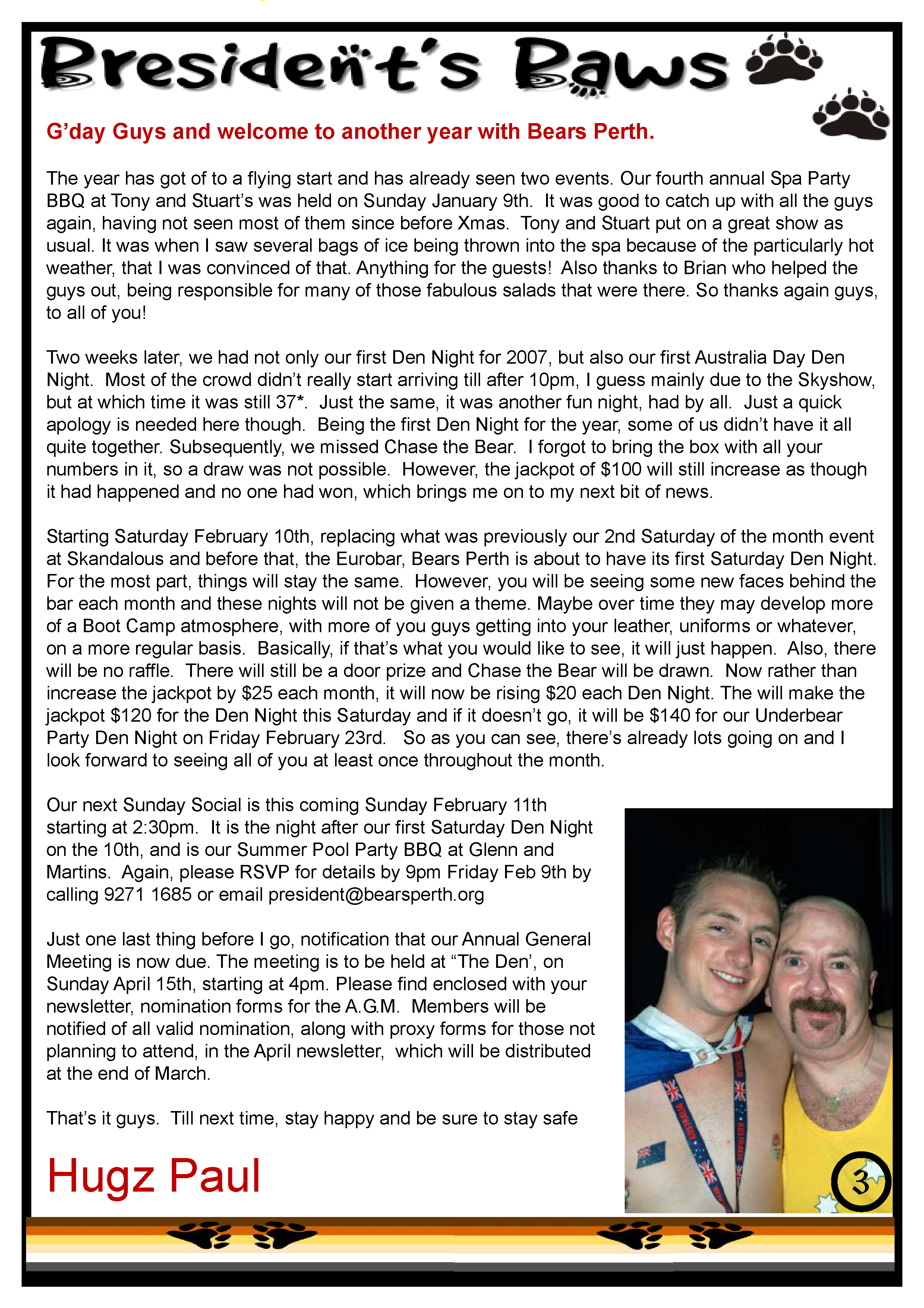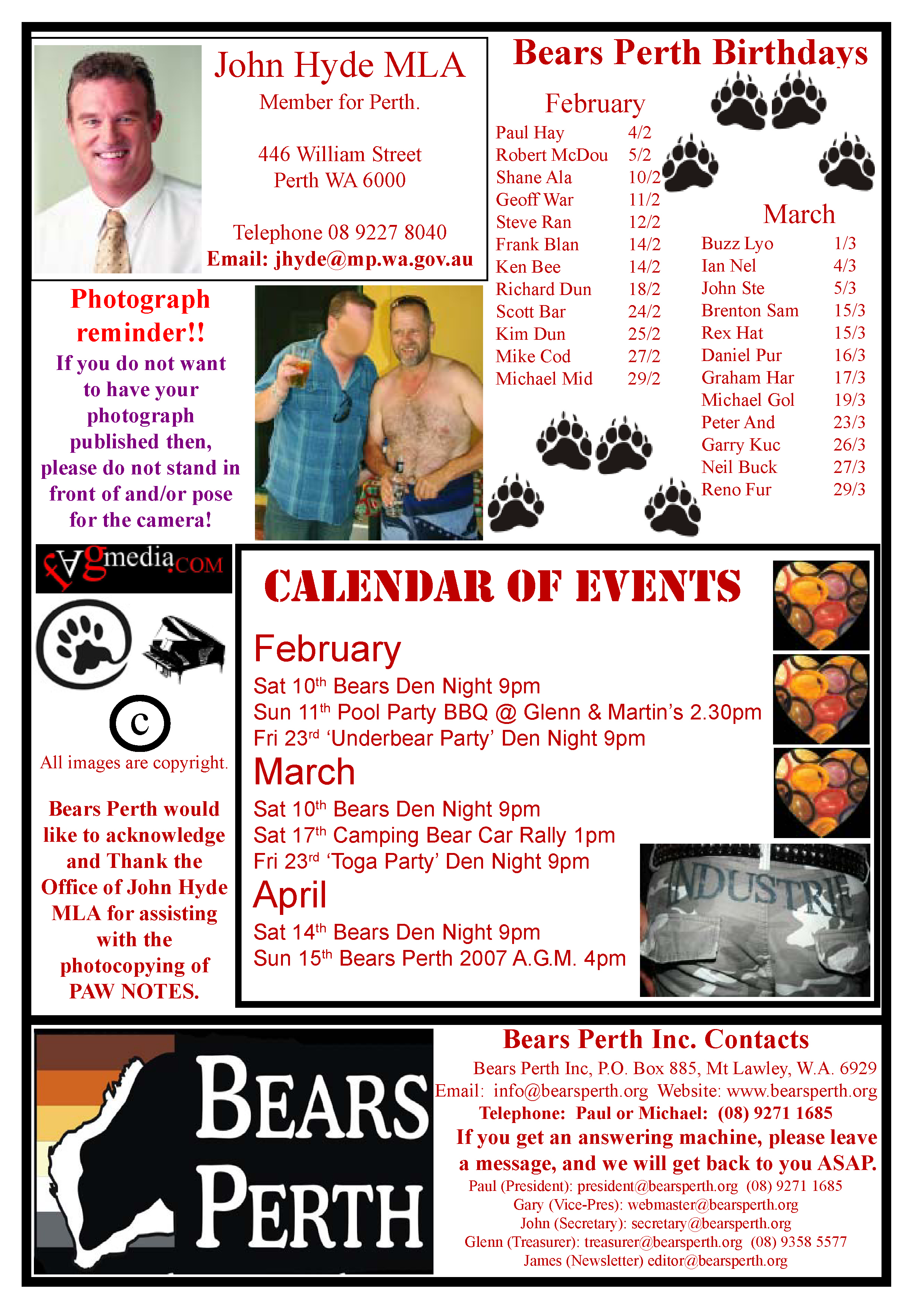 These are the #Photographs of the Bears Perth Newsletter from February 2007.