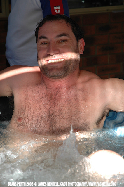 These are photographs from the Bears Perth Spa Party in 2005. This was a really great event. Lots of friendly men and the hosts did a very good job making sure everyone felt welcomed and at home. There were a few first timers and new members so it proved to be a good way for people to see more of each other!