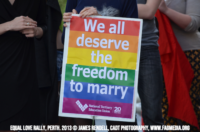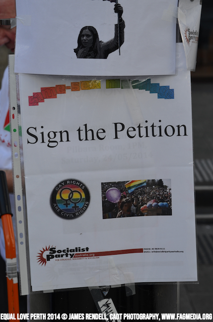 These are photographs from the Equal Love Rally held in Perth on the 15 August 2014, straight after the Gaza Rally organised by the Friends of Palestine WA.