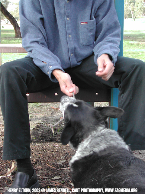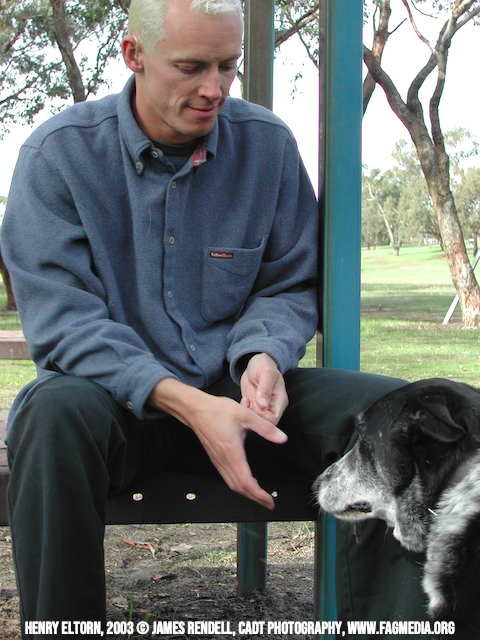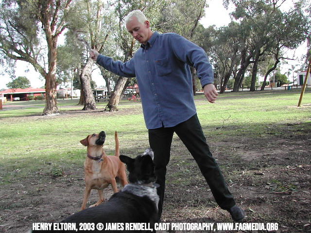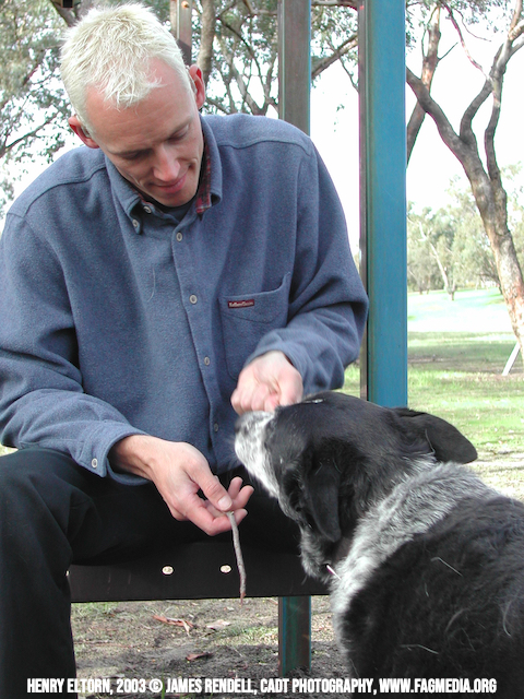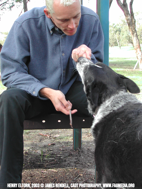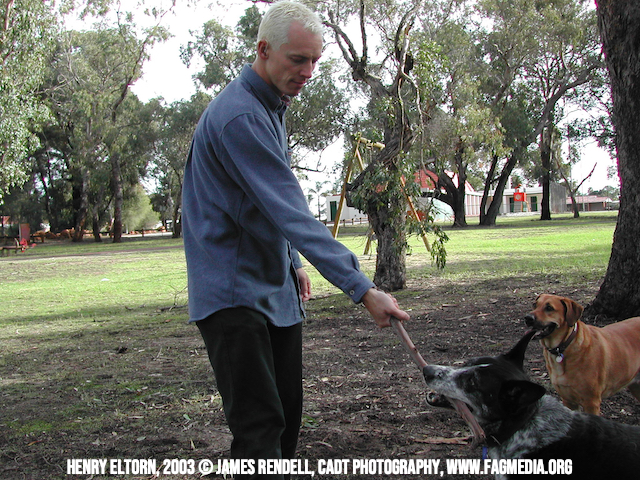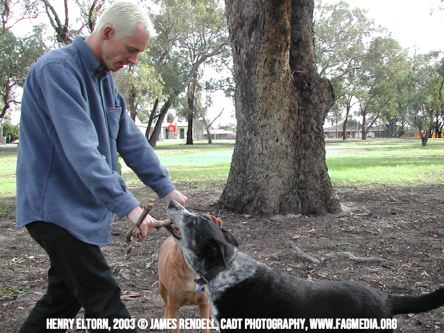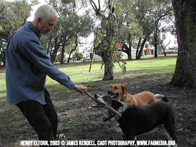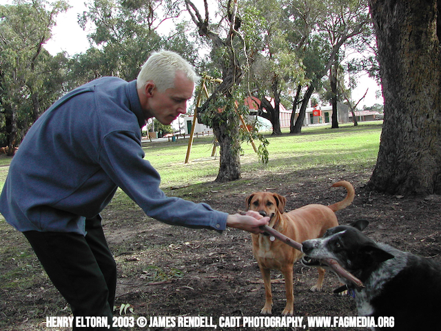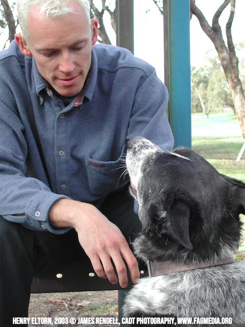 The Dogs in the images are James' Moshi and Fionn. Moshi is a celebrity in his own right having scored First Place at the Victoria Pride Fairday Dog Show in 1995.