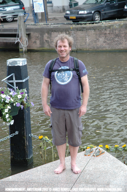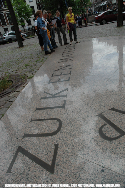 "I think the best part is that the monument integrates itself into the place like an embroidery, and from above it is clearly visible how the triangle is intertwined with the urban and social space, that, for example, when taxi drivers stand in the middle of the monument, they are hardly aware of it. I think that is the most beautiful component of the Homomonument: we are there, proud and strong as granite, the monument binds us together here and now, but we are just as intertwined with the city and society in a larger time and space".