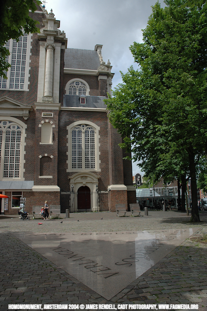 The monument takes the form of three large pink triangles made of granite, set into the ground, which together compose a larger triangle. It is on the bank of the Keizersgracht canal, near the historic Westerkerk church. The Homomonument was designed to "inspire and support lesbians and gays in their struggle against denial, oppression and discrimination."