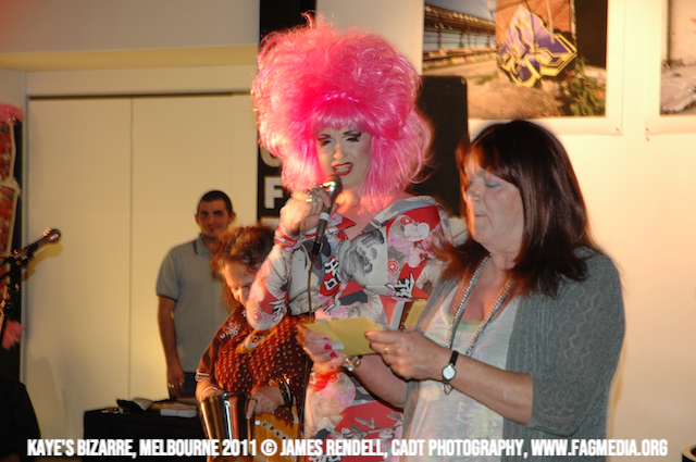 Photographs and recovered Video includes Matt Doll from the Blow Waves, the late Yvonne Gardner a pioneer of the HIV Community who was helping People with AIDS before the AIDS Council was a thing and in no particular order, Dean Arcuri, Henning Wehn, Diana Emry, (Paris Kyne's Net Lady) Justine Jones, Dolly Diamond, Luke Gallagher, Wayne Deakin, Pastel Vespa, Kaye Sera, Cath Jamieson, Peter de Groot, Brenton Geyer, Jeffrey Grad, Paris Kyne, Cameron Thomas and Travis de Jonk who helped Yvonne with the Presenting.
