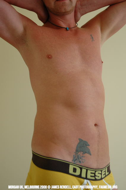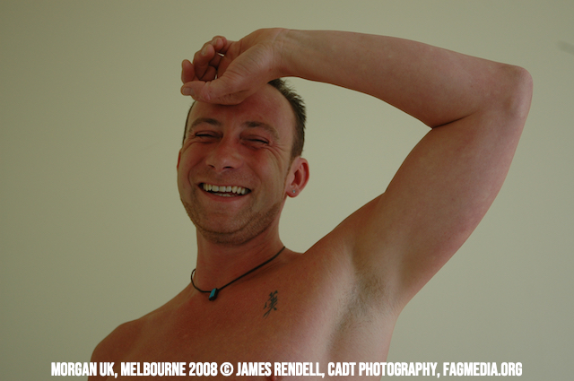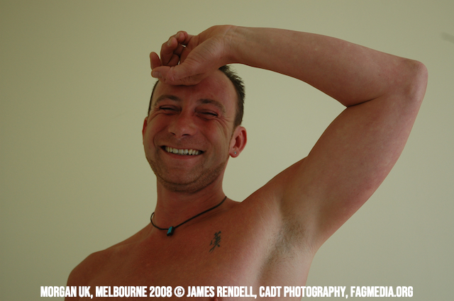 Morgan was a dude from the UK who was working as a barman in one of Melbourne's Commercial Road and so he knew James from Fagmedia's Event Photography in Victoria. So as folks do, Morgan negotiated a commission for photographs for his social media and online dating profiles and Fagmedia got to use the images in our promotions and websites!