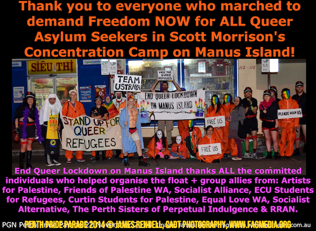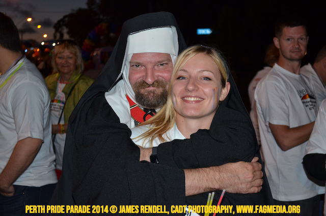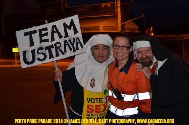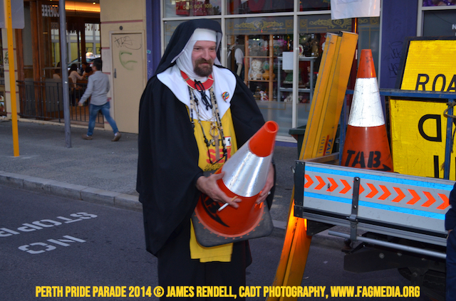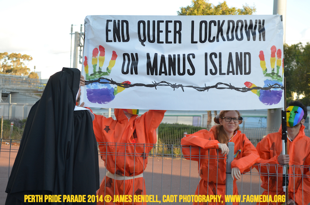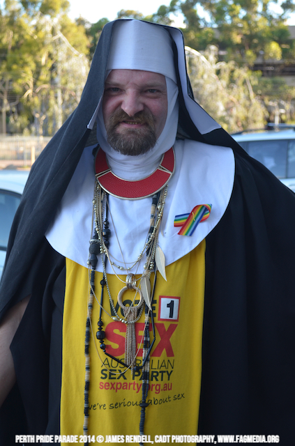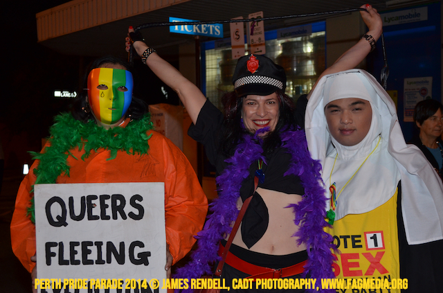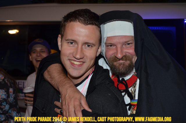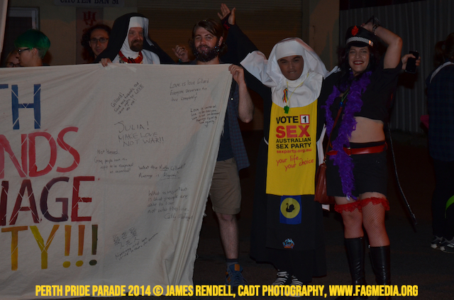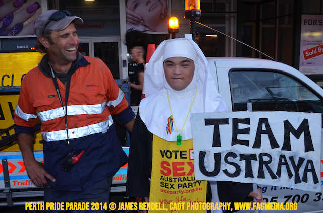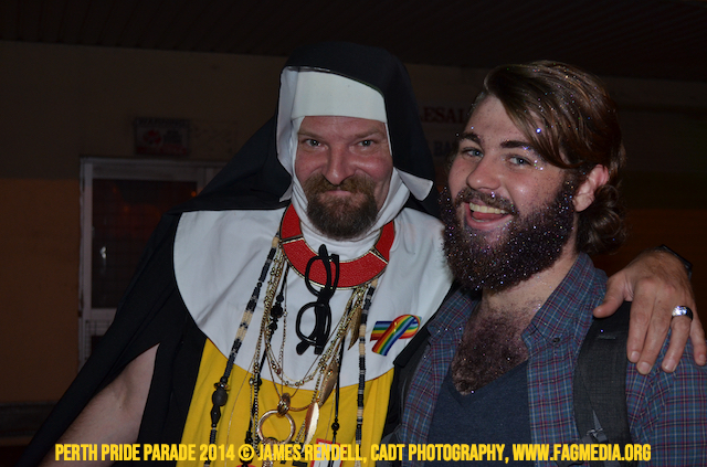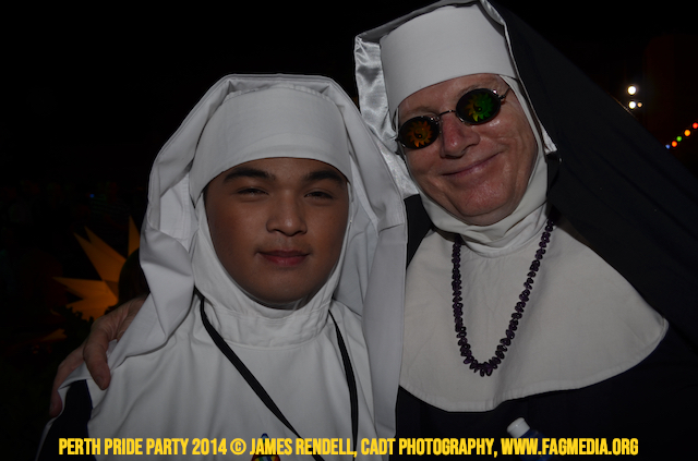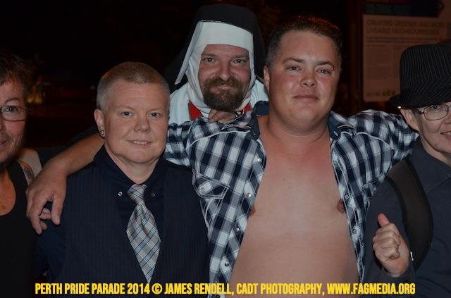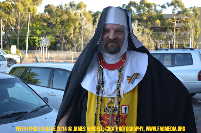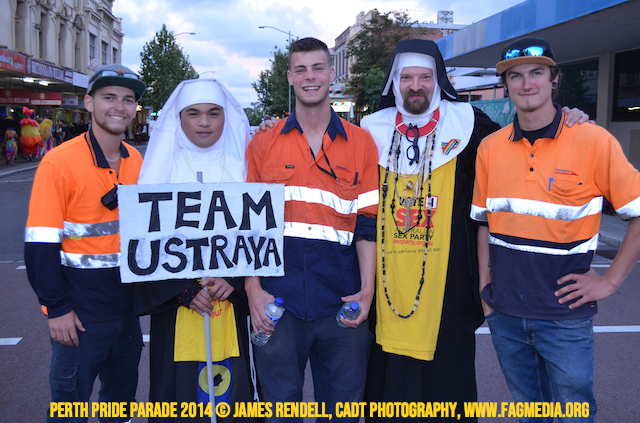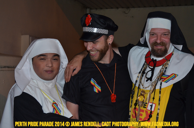 The Perth Sisters of the Abbey of the Black Swan marched in the Parade with the End Queer Lockdown on Manus Island float which was run in conjunction with the good people of Equal Love WA.