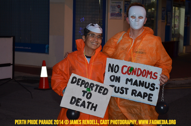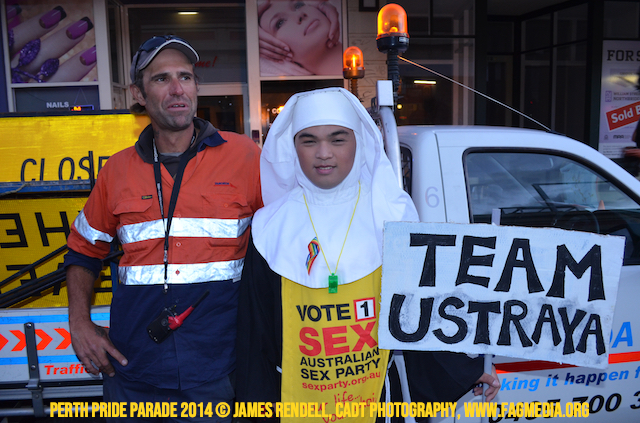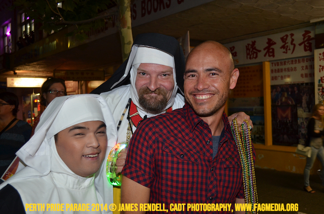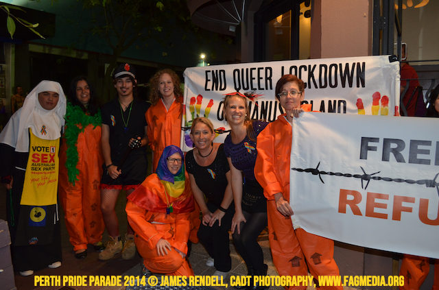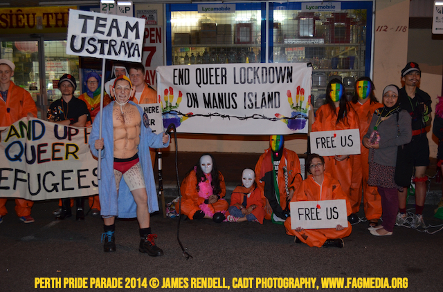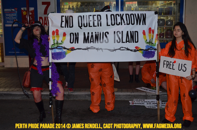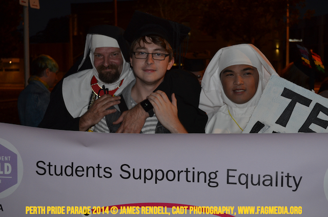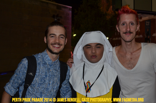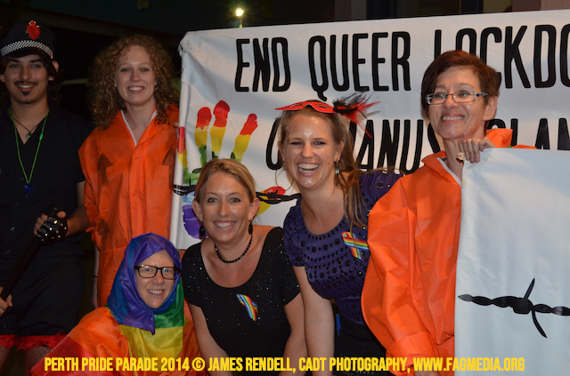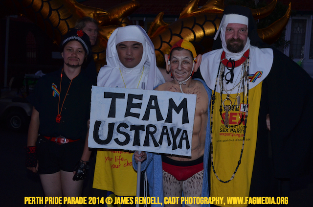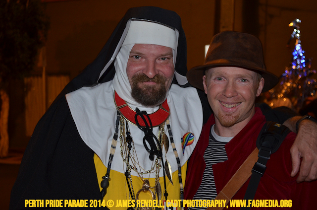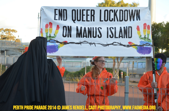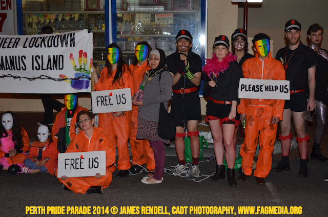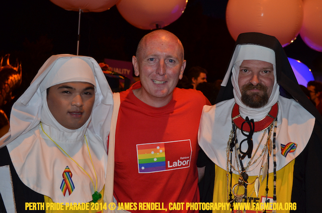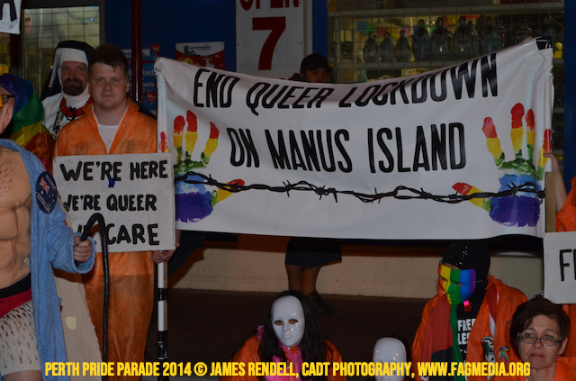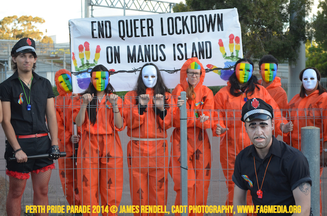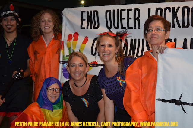 The Perth Sisters of the Abbey of the Black Swan marched in the Parade with the End Queer Lockdown on Manus Island float which was run in conjunction with the good people of Equal Love WA.