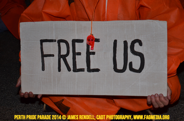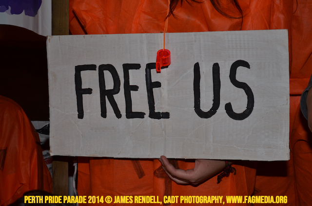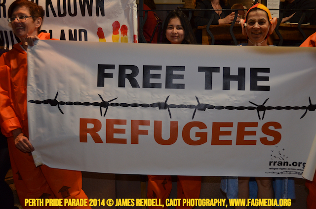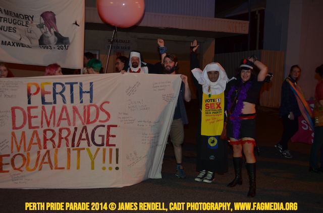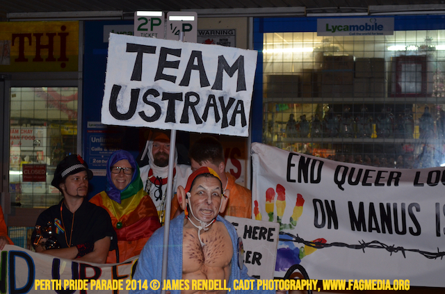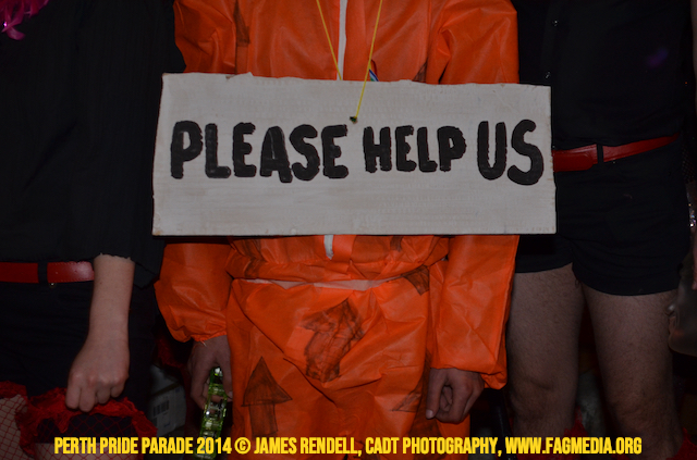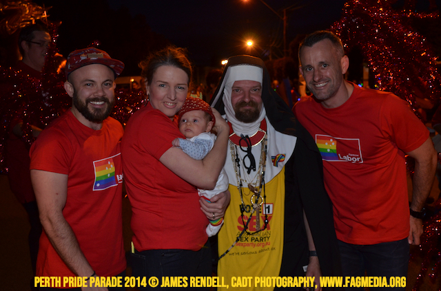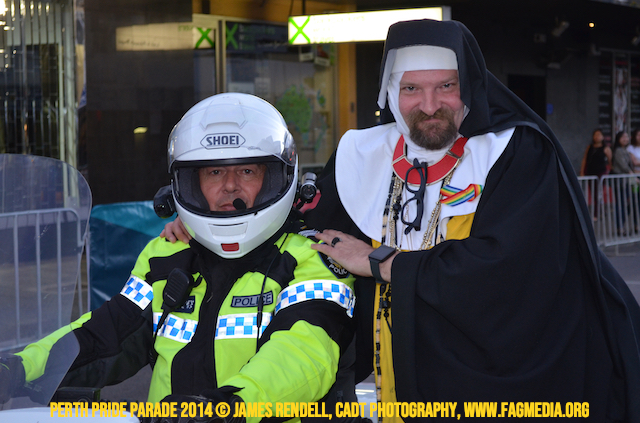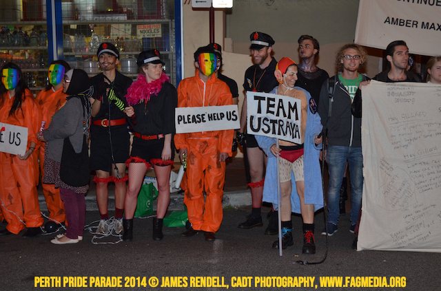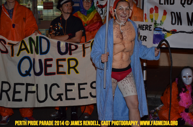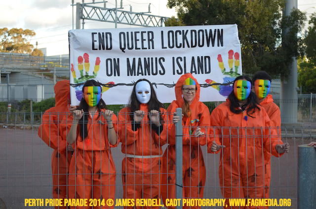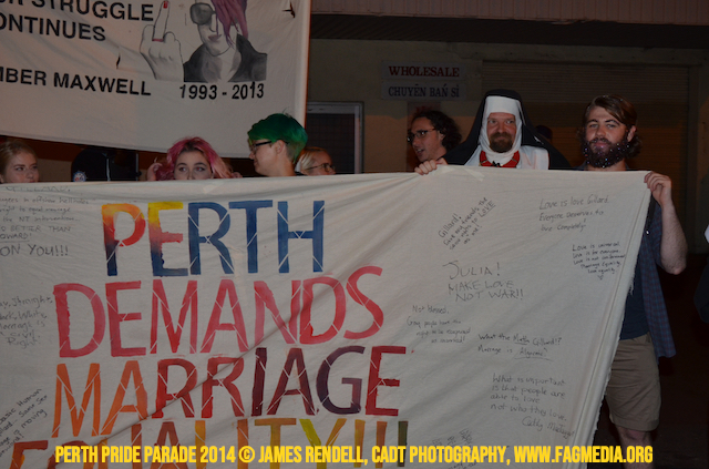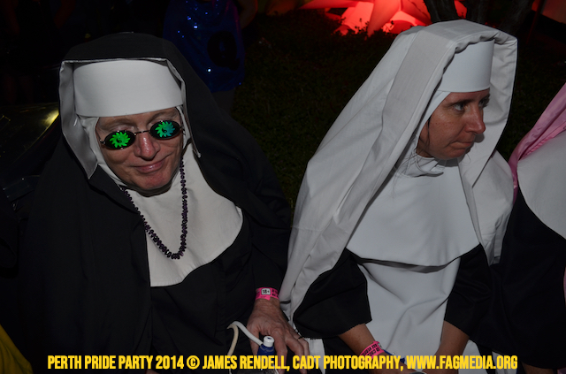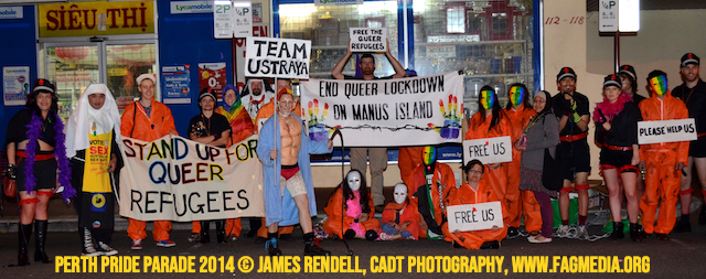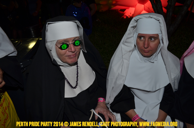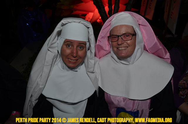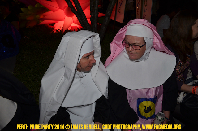 The Perth Sisters of the Abbey of the Black Swan marched in the Parade with the End Queer Lockdown on Manus Island float which was run in conjunction with the good people of Equal Love WA.