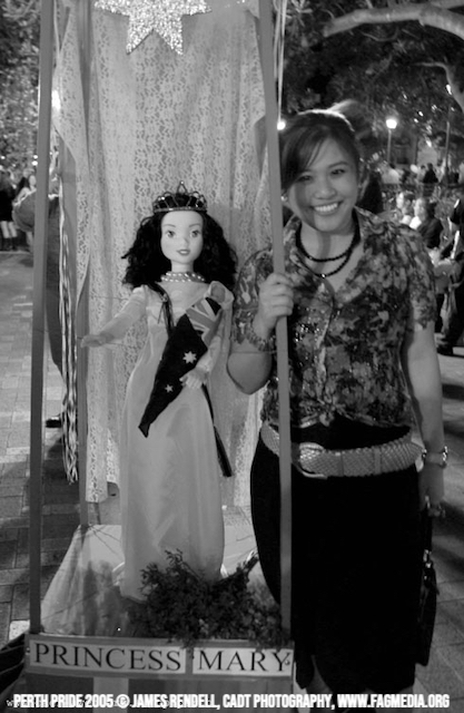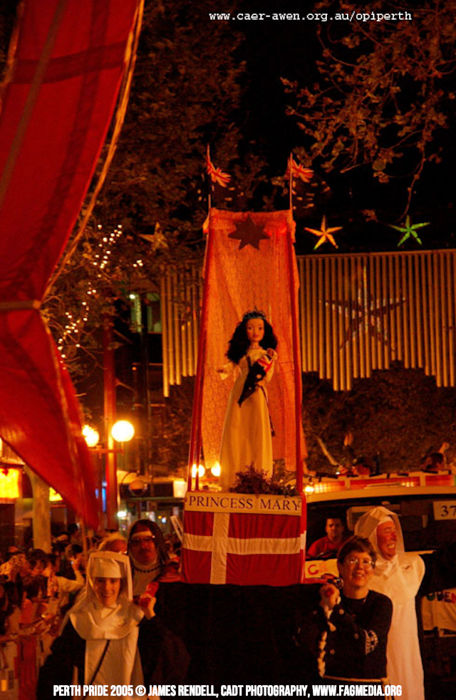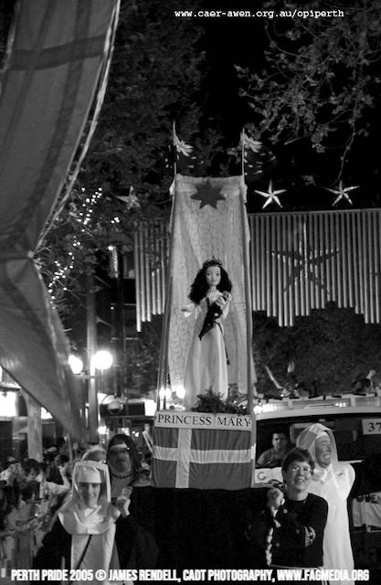 The Sister's Pride Float theme Celebrated the Marriage of Princess Mary and the person who did all the work was the late Sr Bear Hairesy of the Euro Gutter Trash who died from Cancer not long after these pictures were taken.