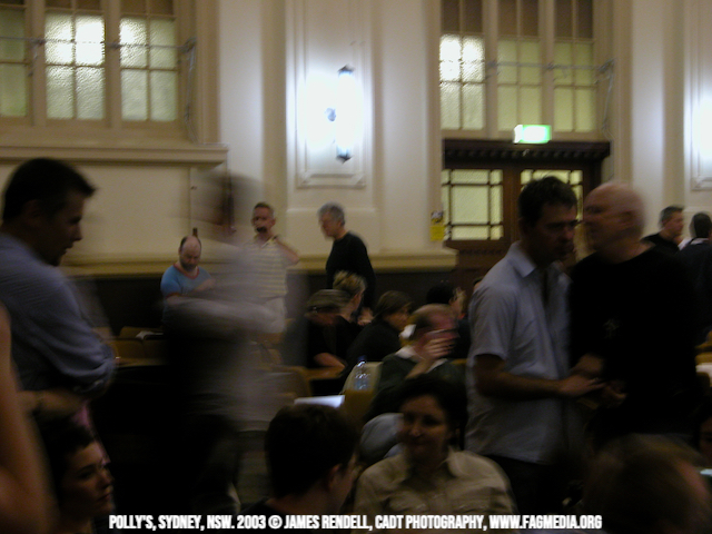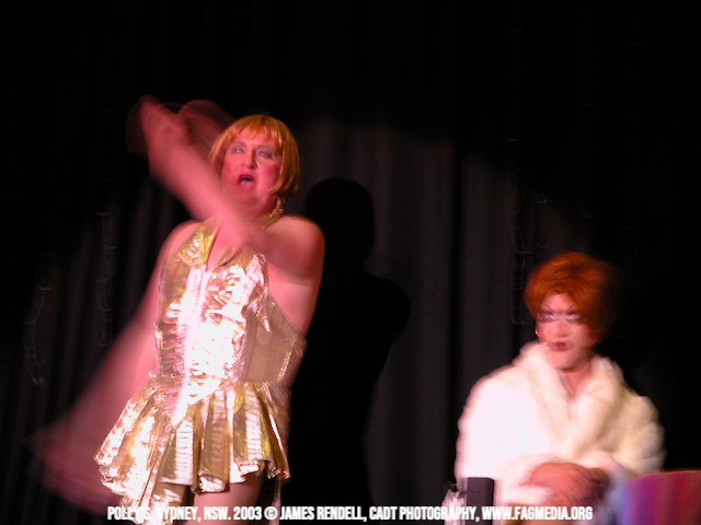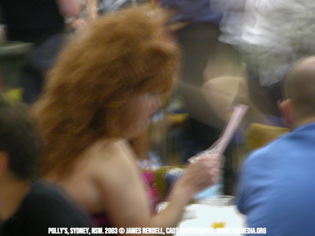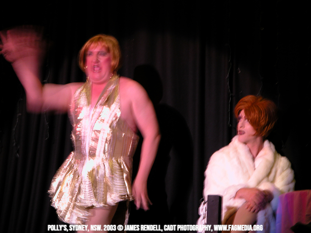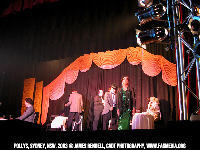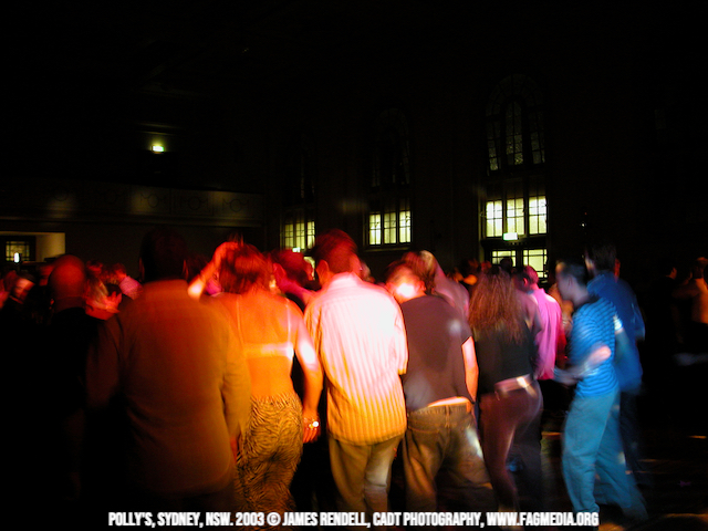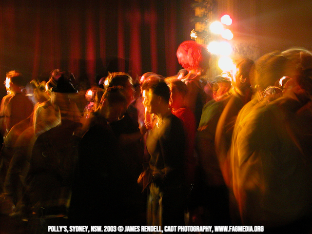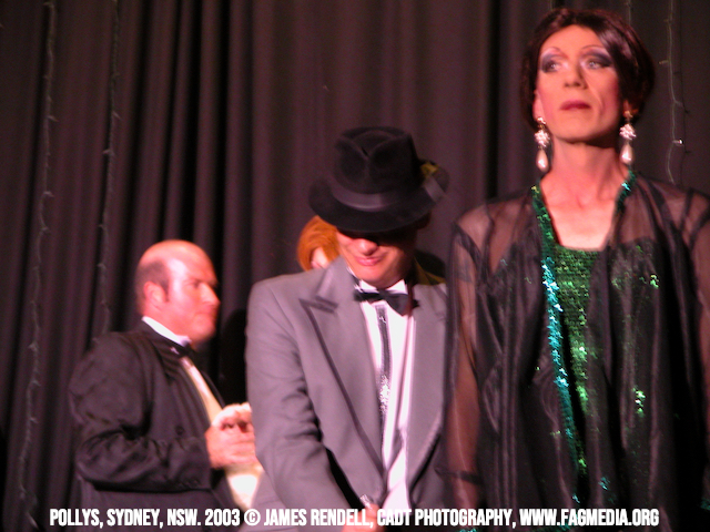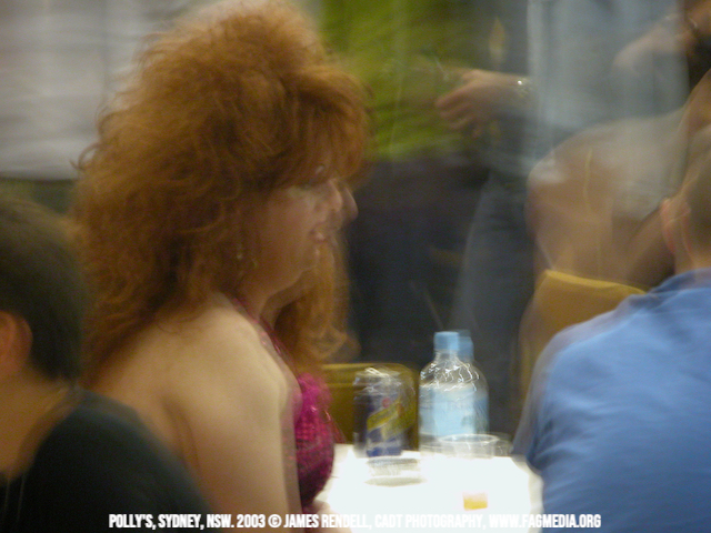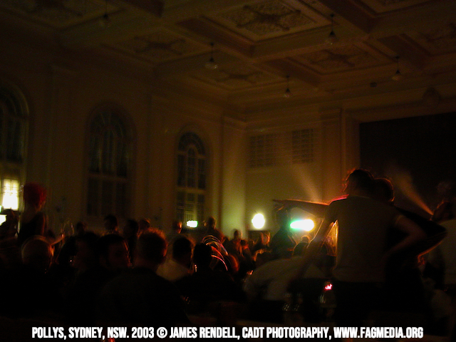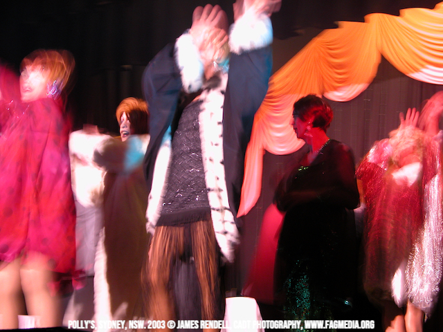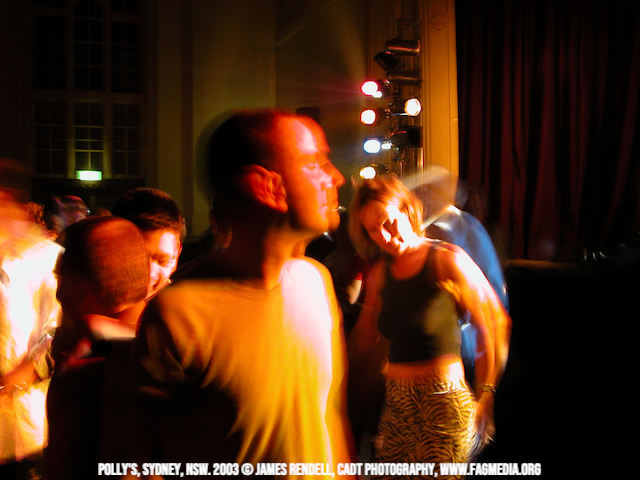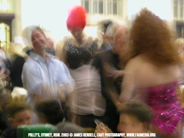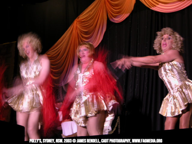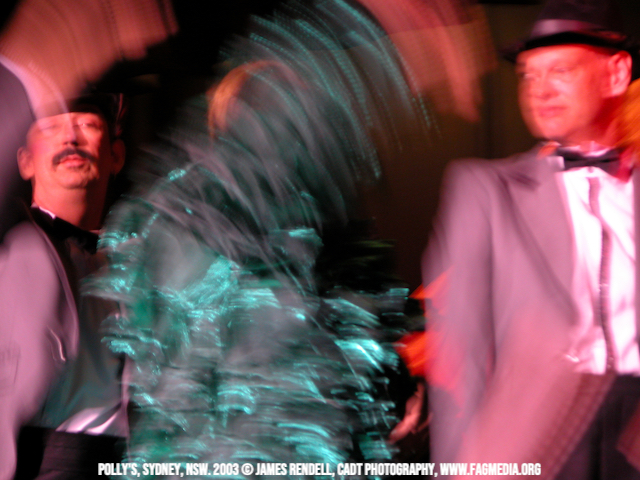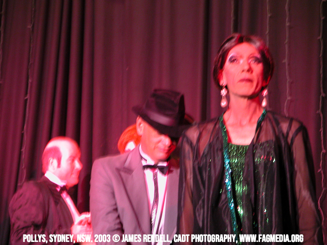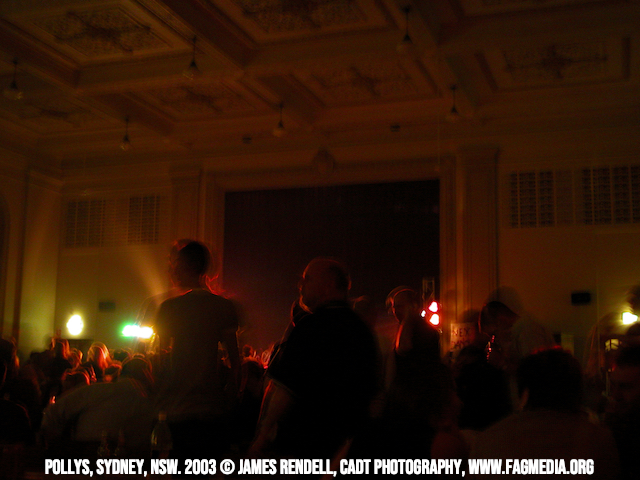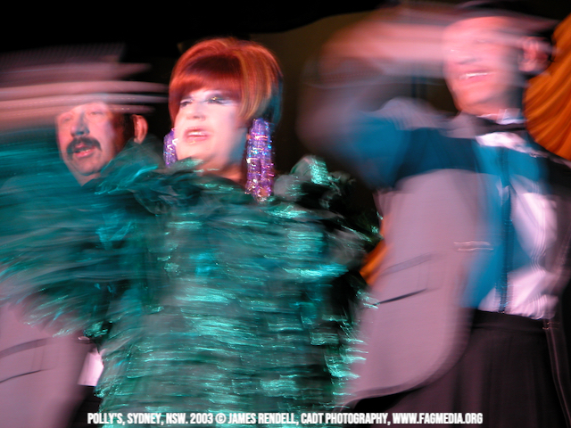 Run completely by volunteers since 1964, the Pollys club holds 5 dances a year - usually four at Marrickville Town Hall and one at the NSW University Roundhouse. The format of these has not changed much over the years... doors open at 7pm for a dance set which is a meander through the decades. This is followed by the 30-45 minute drag show at 9:30pm. The second dance set is more mixed but still retro, still dancy and still fabulous.