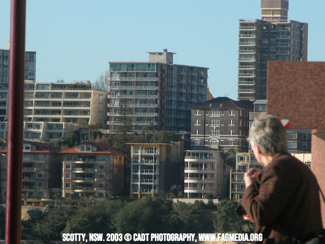 I have always remembered Scotty and it was great to spend quality time with him during the Spring of 2003. Scotty indulged my photographic obsessions and so together we jumped on ferries from Darling Harbour and walked around Sydney where I collected images of Sydney life.