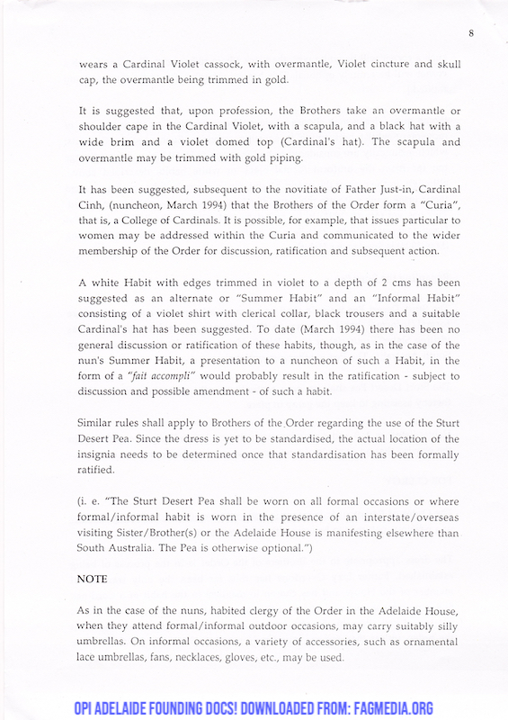 Like, but unlike, the Vatican Church, People can join OPI-Perth as Lay Members or as Ordained Sisters and Brothers. There are many members of the OPI who choose not to manifest in habit yet are still full Voting members of the Association. e.g. Guards and Convent Seamstresses etc.