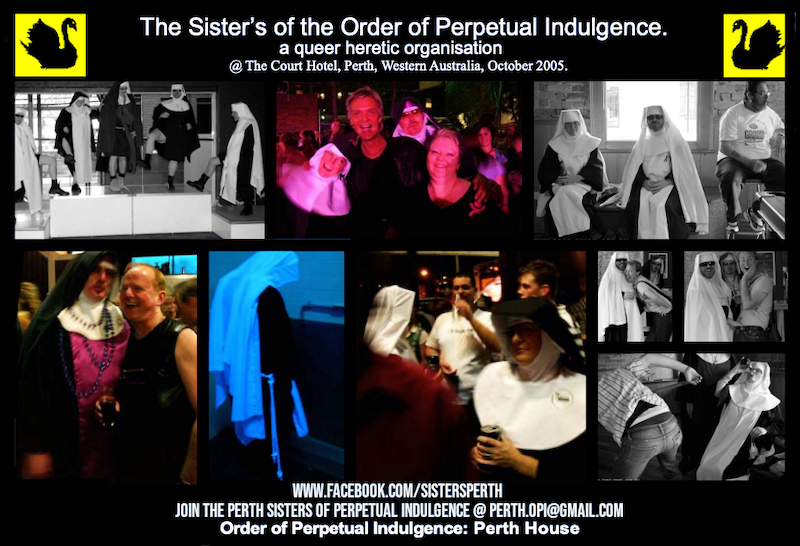 To Join the Order of Perpetual Indulgence email our Novice Mistress at perth.opi @ gmail.com and or contact Mother Gretta at www.facebook.com/sistersperth